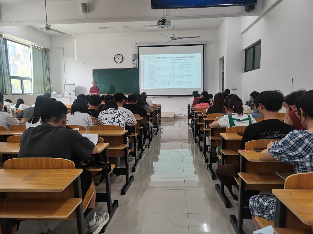 程幼明从安徽工程大学的校园环境、学科建设、科学研究、办学条件、师资队伍、区位优势等多个层面,介绍了学校的基本情况。他重点讲解了经济与管理学院的师资力量、科研成就、硕士培养等情况。最后他结合经济与管理学院招生专业政策、复习科目、报考条件及奖助政策做了详细介绍,并督促同学们提前做好规划,争取取得优异成绩。