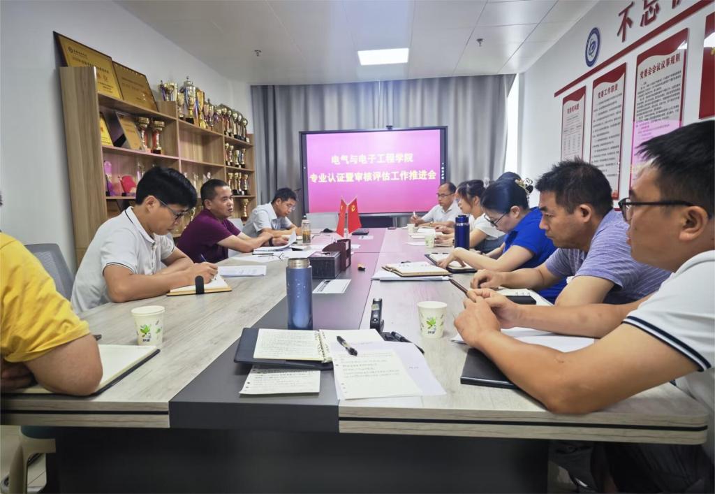 为深入推进专业认证和本科教育教学审核评估工作,落实专业认证和审核评估整改工作任务,8月14日下午,电气与电子工程学院在龙湖校区西辅楼308会议室召开专业认证暨本科教育教学审核评估工作推进会。学院党委副书记、院长夏显明,副院长国海,副院长樊晓宇,各系室主要负责人参加会议,会议由夏显明主持。