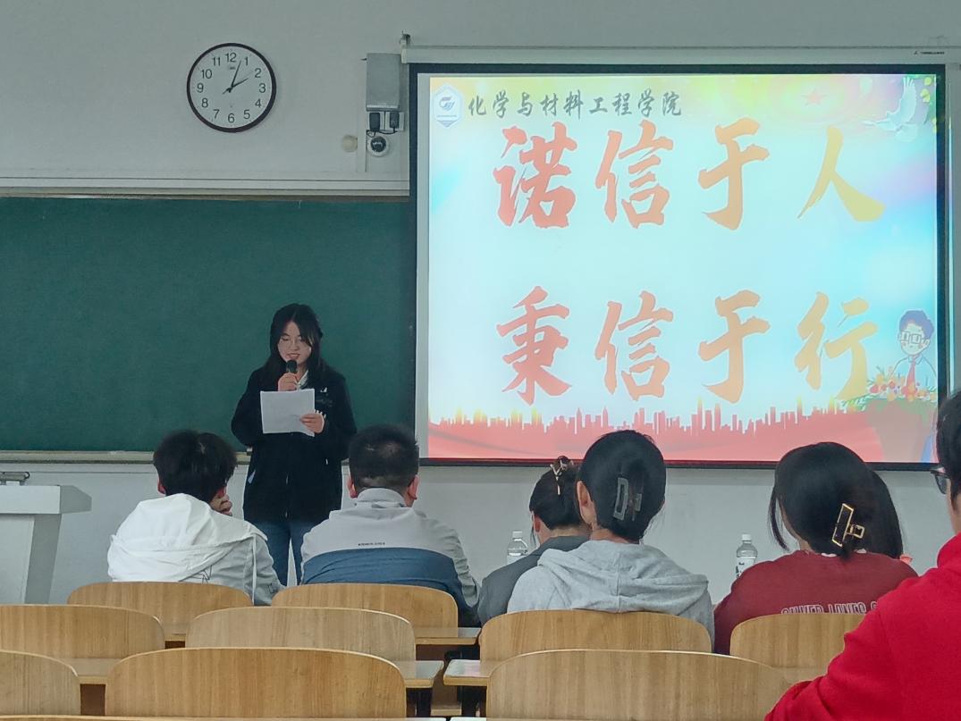 为强化资助育人效果,深入弘扬社会主义核心价值观,化学与材料工程学院于5月10日在致知楼A103教室举办“诺信于人,秉信于行”学生资助诚信主题演讲比赛。