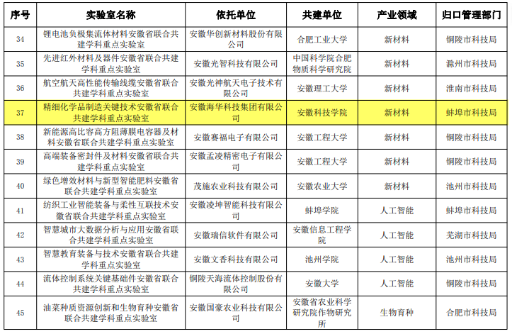 2023年3月,安徽海华科技集团有限公司联合三亿网页版申报并获批了精细化学品制造关键技术联合共建学科重点实验室(筹),其中安徽海华科技集团有限公司为主持单位,承担实验室主体建设工作;学校为联合共建单位。