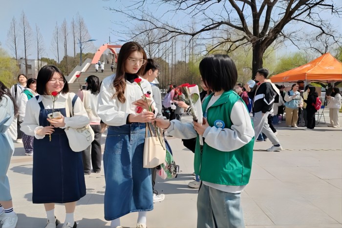 为关心关爱女大学生身心健康,为女生营造“欢乐,祥和,友爱”的节日氛围。3月7日,农学院分别在东区食堂门口、五四广场、西区小广场开展“送你鲜花,传递友爱”女生节活动。