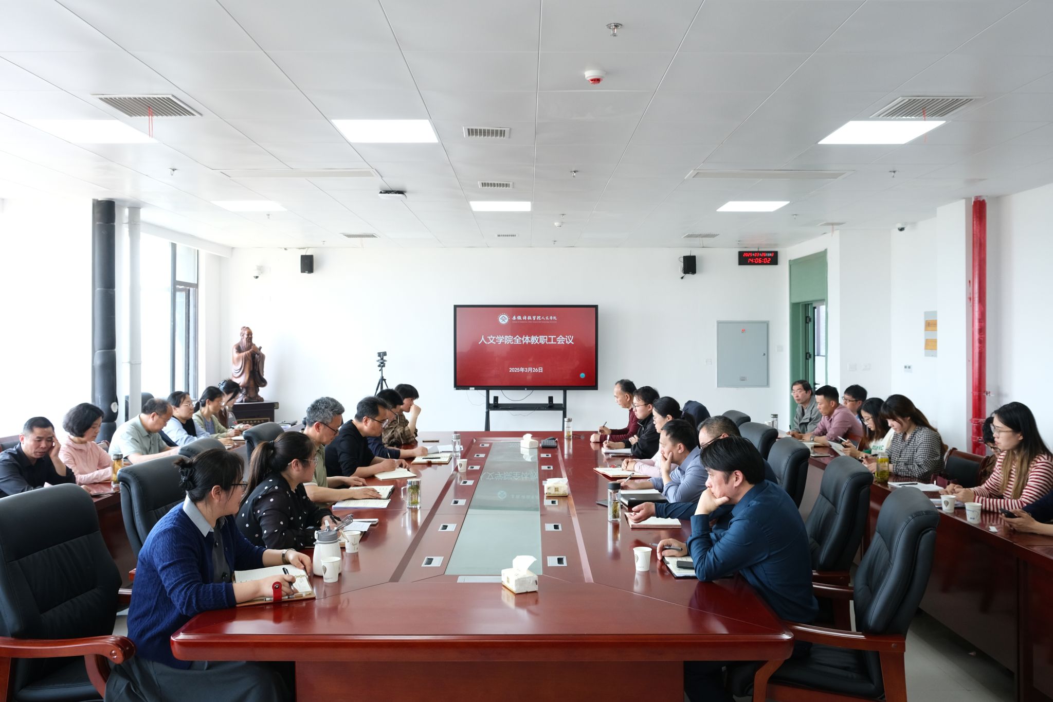 3月26日下午,人文学院在学院会议室召开全体教职工会议,总结和部署推进本学期学院重点工作。会议由学院正处级组织员张严政主持。