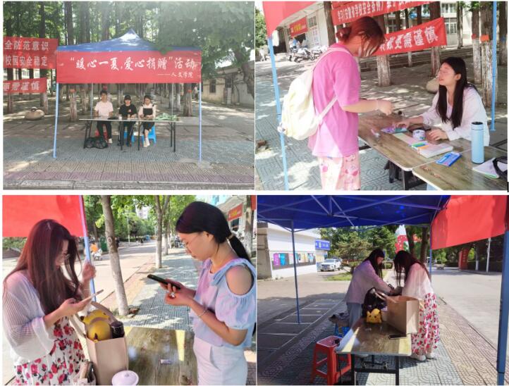 为提高大学生的奉献意识与社会责任意识,弘扬“奉献、友爱、互助、进步”的志愿服务精神,6月4日-5日,人文学院青年志愿者服务中心在东一宿舍楼门口举办为期两天的“暖心一夏,爱心捐赠”志愿服务活动。本次捐赠的目的地是四川省甘孜州石渠县。