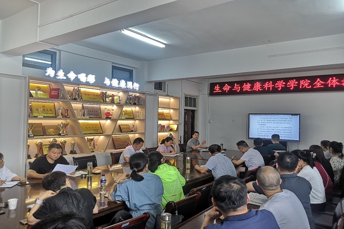 8月7日下午,生命与健康科学学院在学院会议室召开本科教育教学审核评估工作推进会。学院全体教职工参加会议,会议由学院党委副书记(主持工作)张传德主持。