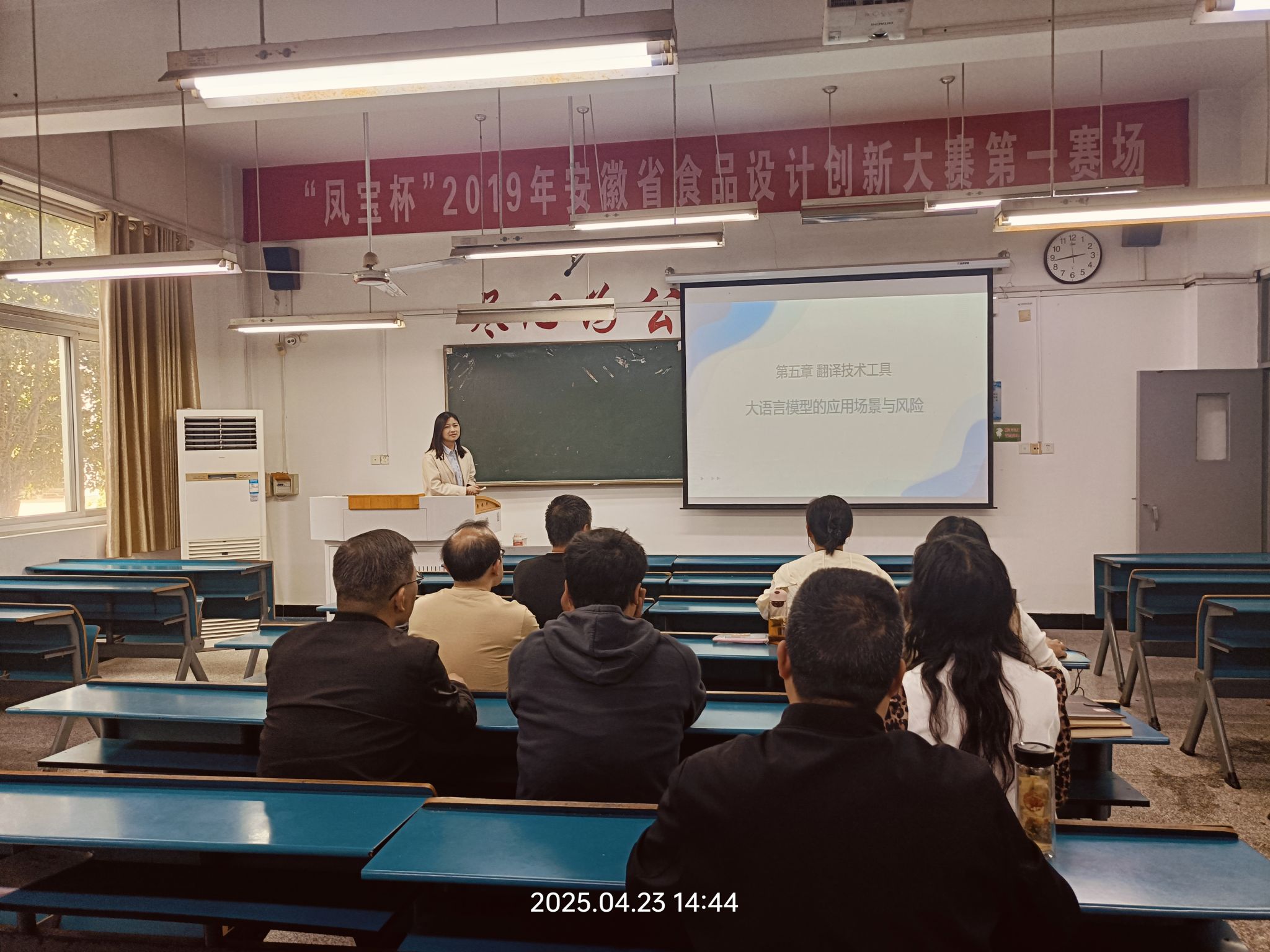 2025年4月23日下午,外国语学院翻译教研室在求知楼B105举行了由韩名利老师主讲的《翻译技术工具——大语言模型的应用场景与风险》示范课。