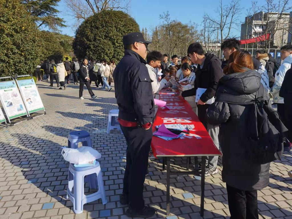 为了进一步增强广大师生的交通安全法规意识和安全文明意识,教育学生文明行车、拒绝违章,防止交通事故,创建平安校园,12月2日上午,保卫处党支部在凤阳东校区西门小广场开展“多走路,少骑车,共建平安校园”交通安全宣传主题党日活动。保卫处党支部全体党员、洪武路派出所、校卫队等参加了此次活动。