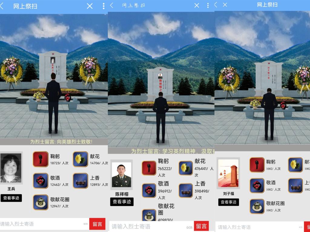 在网上祭英烈活动中,党支部全体同志通过电气与电子工程学院易班工作站轻应用“恰至清明”登陆中华英烈网“祭扫烈士”活动专题页面,瞻仰英烈生前照片,在线学习英烈生平事迹,寻找英雄人物足迹。通过向英烈鞠躬、献花、敬酒、上香、敬献花圈、寄语留言等多种方式祭扫,表达对革命英烈的缅怀之意,崇敬之心。一朵朵鲜花,一句句留言,寄托着支部党员同志对革命先烈的哀思,是青年学生党员对党和国家的庄严承诺“请党放心,强国有我”。