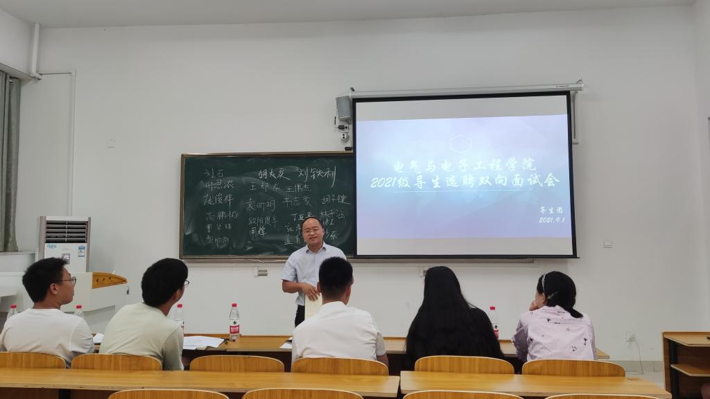 为有效开展新生的思想教育和管理工作,9月7日,电气与电子工程学院举行新生导生双选会,电气学院党委副书记尚磊,党政办公室主任王延丽,团委书记张成孜,辅导员陈更强、张深、洪乃羽、于宏亮担任本次的面试官,对选聘导生进行评分指导。