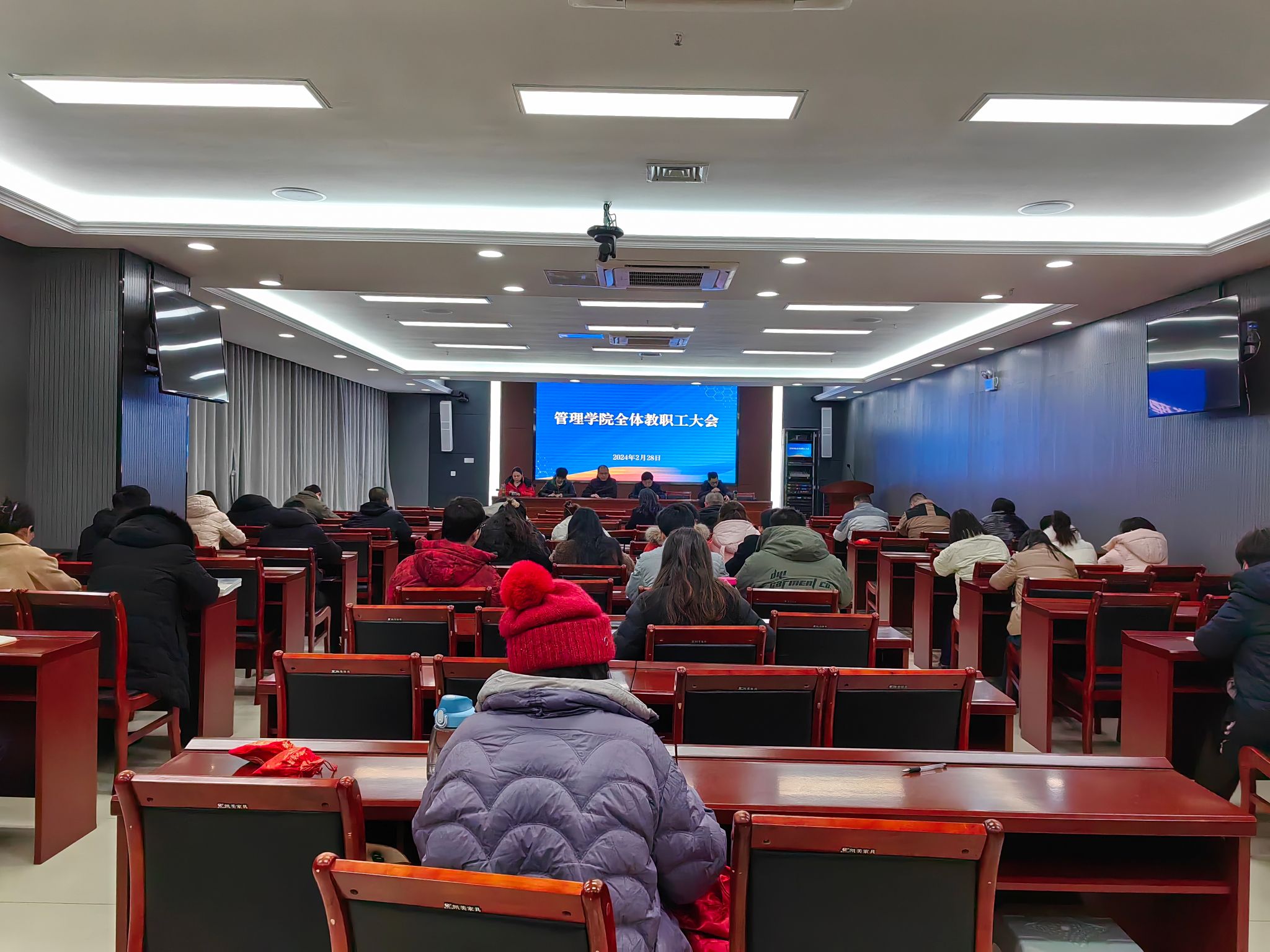 2月28日下午,管理学院在西附楼111会议室召开期初全体教职工大会。学院党政领导及全体教职工参加了会议。会议由院党委书记丁景良主持。