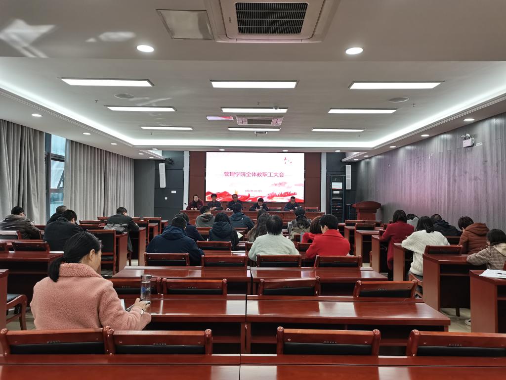3月2日下午,管理学院在龙湖校区西附楼111会议室召开全体教职工大会,学院党政领导及全体教职工参加了会议。会议由学院党委书记丁景良主持。