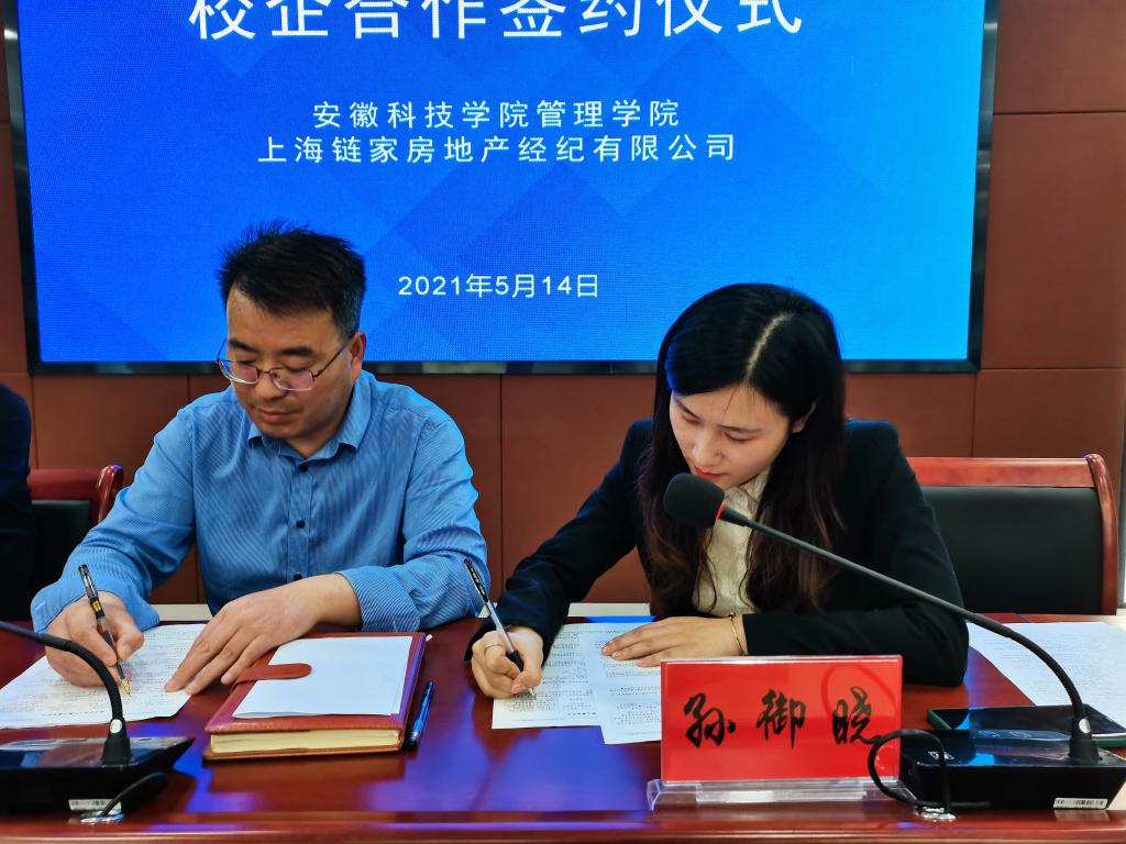 赵伟峰与孙御晓共同签署了《三亿网页版与上海链家房地产经纪有限公司校企合作协议书》。