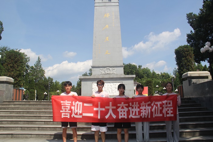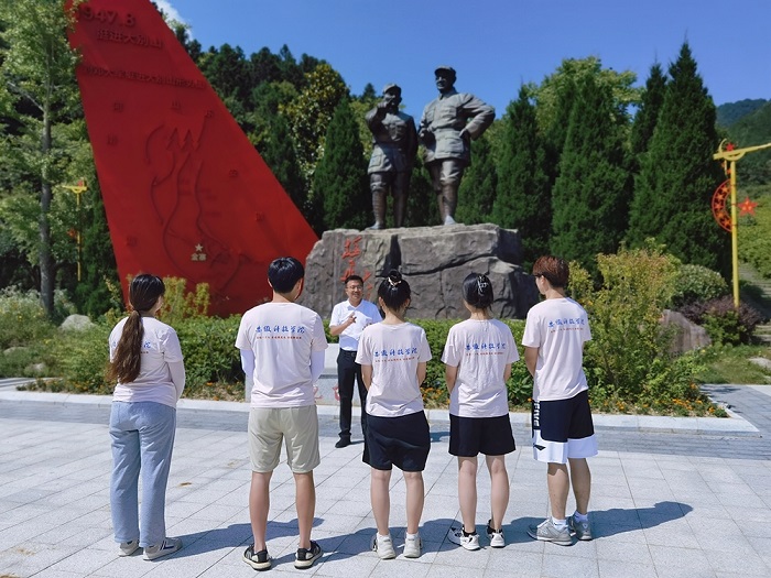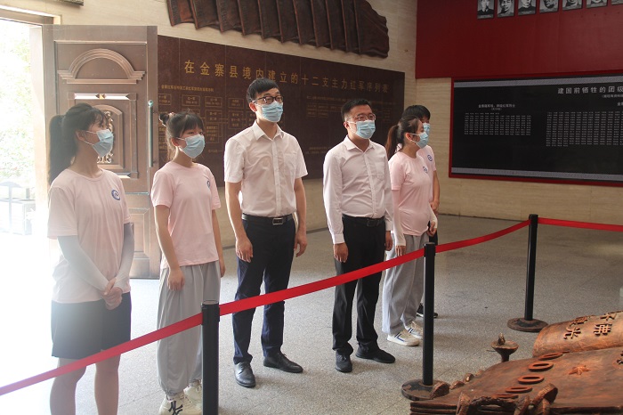 7月11日,管理学院团委副书记江旭聪、团委办公室黄斐老师利用指导学生暑期社会实践间隙,率领该院团委组织部、团委宣传部及院学生组织新型团支部负责人和青年团员代表,走进大别山革命老区六安市金寨县开展红色主题团日活动,深入学习领会习近平总书记在庆祝中国共青团成立100周年大会上的重要讲话精神和习近平总书记关于用好红色资源、赓续红色血脉的重要论述,实地感悟中国共产党人精神谱系中的大别山精神。