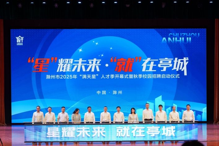 9月20日,“‘星’耀未来 ·‘就’在亭城”滁州市首届“满天星”人才季开幕式暨秋季校园招聘启动仪式在我校滁州校区举办,校党委书记时伟,滁州市委常委、常务副市长姚凯,市委常委、组织部部长周文芳出席启动仪式。滁州学院、滁州职业技术学院、滁州城市职业学院、滁州技师学院等院校负责人出席开幕式。