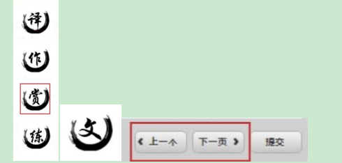 5.诗人简介:点击界面左侧“作”按钮。学习结束点击界面左侧“文”按钮或“上一页”返回原文。点击“下一页”继续学习诗词赏析。