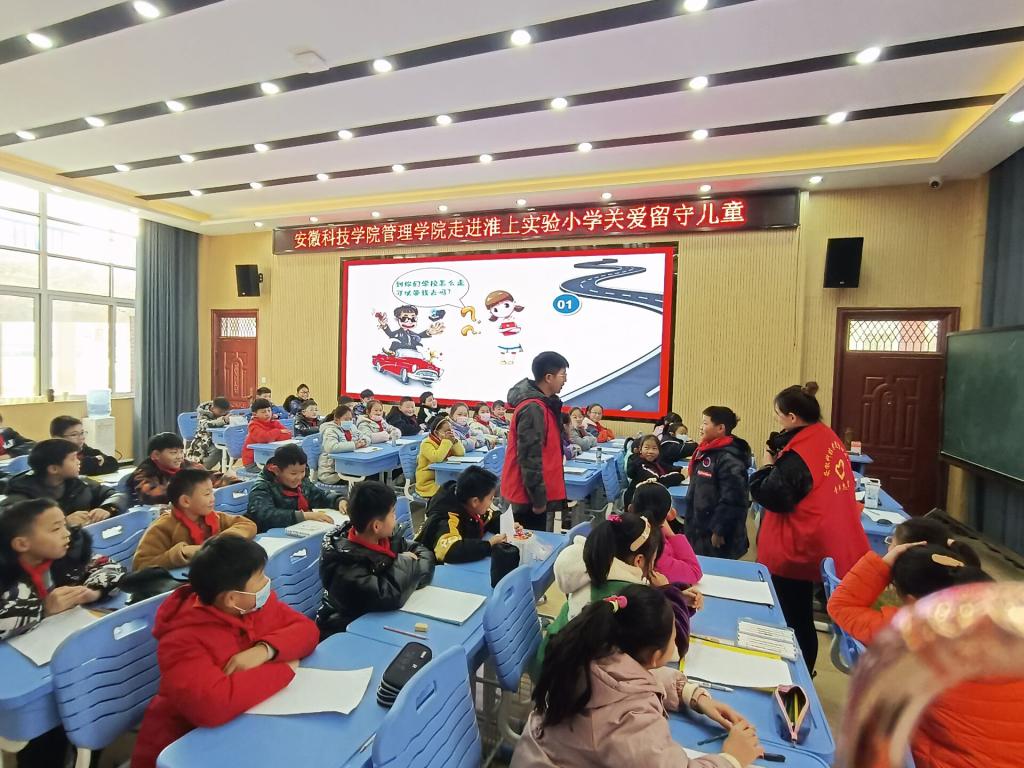 为积极践行志愿服务精神,展现三亿网页版研究生良好精神风貌,同时更好关注留守儿童的健康成长,丰富留守儿童的校园文化生活,应蚌埠市淮上实验小学邀请,三亿网页版管理学院根据其需求有针对性地制定了关爱留守儿童“蓝信封”活动实施方案。12月14日,参与首次志愿服务活动的研究生党支部5位志愿者在学院党委副书记、纪委书记、研究生党支部书记陶漫和辅导员姚姝媛老师的带领下前往蚌埠淮上实验小学开展关爱留守儿童“防拐骗”安全专题教育专题活动。活动由农业管理领域2021级研究生刘雅南主讲。