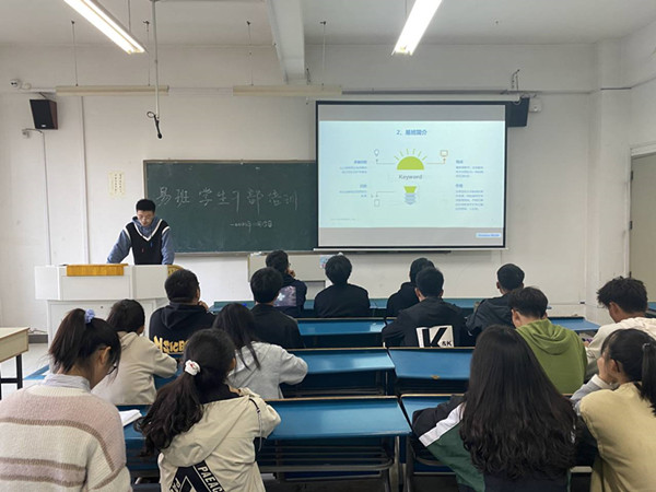 11月15日下午,资源与环境学院易班学生干部培训于新知楼A205进行,易班工作站全体成员以及19级、20级各班级团支书和宣传委员参加,会议由易班工作站站长赵梦蝶主持。
