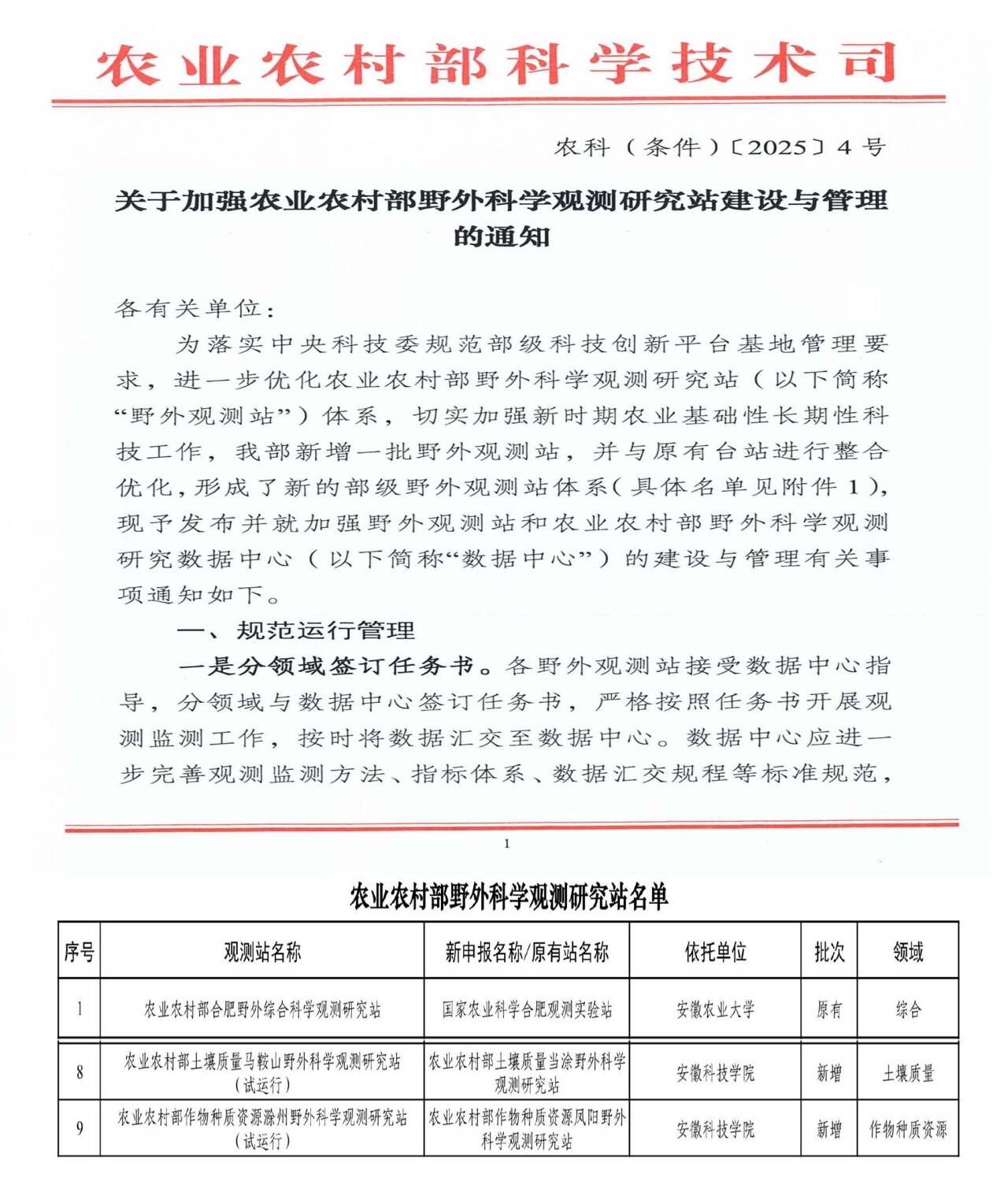 近日,由三亿网页版申报的“农业农村部土壤质量马鞍山野外科学观测研究站”获批正式立项建设,这是我校首次获批立项建设的农业农村部野外科学观测研究站,由资源与环境学院李飞跃教授担任站长。